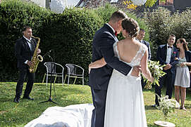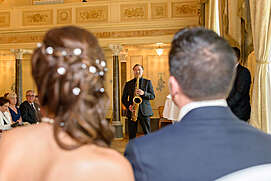 Ein schöner Saxophonsong ist ebenso wirkungsvoll wie ein perfekter Brautstrauss, Dekorationen, köstliches Essen oder erlesene Weine. Ein Sax zur Trauung kann ein stimmungsvoller Höhepunkt der Zeremonie, des Apéros und des Dinners sein. Die feinen Töne des Tenorsaxophons gehen direkt ins Herz, verbunden mit den schönsten Liebesliedern oder einem ganz persönlichen Song des Brautpaares, machen diese Attraktion akustisch und auch optisch zu einem Highlight jeder Trauung.