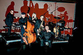 Stellen Sie sich eine Band mit Keybord, Akkordeon, Kontrabass, Elektrobass, Trompete, Saxophon, Schlagzeug und sogar einem DJ vor. Also eine richtige Showband, die auch einen grossen Saal in Bewegung bringt. Das Besondere: Die Band spielt live hinter einer Leinwand. Zu sehen sind die Schatten der Musiker und Musikinstrumente. Dank wandernden Scheinwerfern mal mit einem 6 Meter grossen Mister Saxr oder einem 50 cm kleinen Schlagzeuger. Bei einem Event der AXPO mit 1'500 Gästen in der Umweltarena Spreitenbach spielte die Schattenband sage und schreibe vier Stunden lang. Wie lange halten Sie mit?